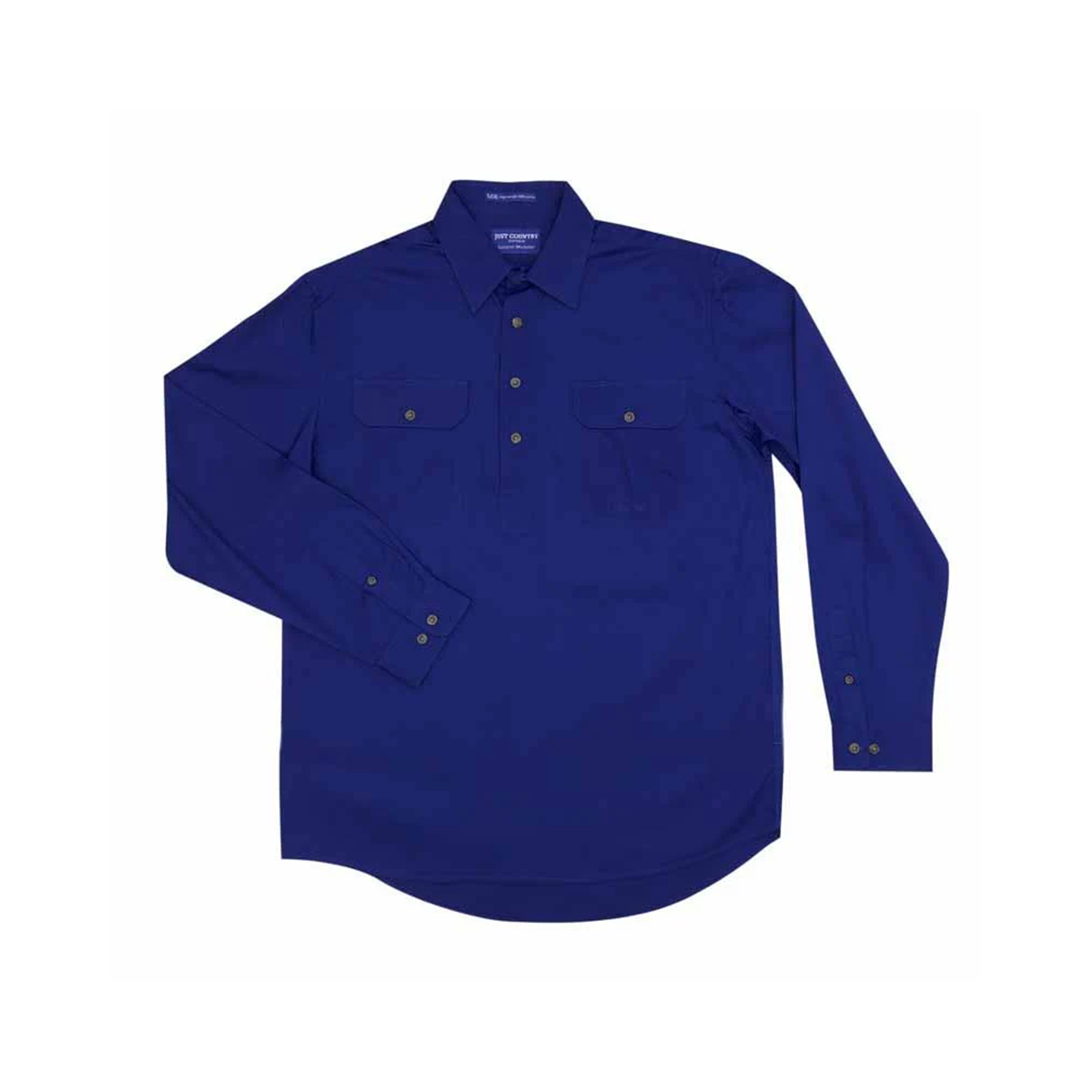 Long tails so shirts stay tucked-in, 100% Cotton, Double pockets, Long sleeve, Half button front, Twin needle stitching, Side pleats on back for ease of movement, Pen hole left pocket, Lightweight 150gsm