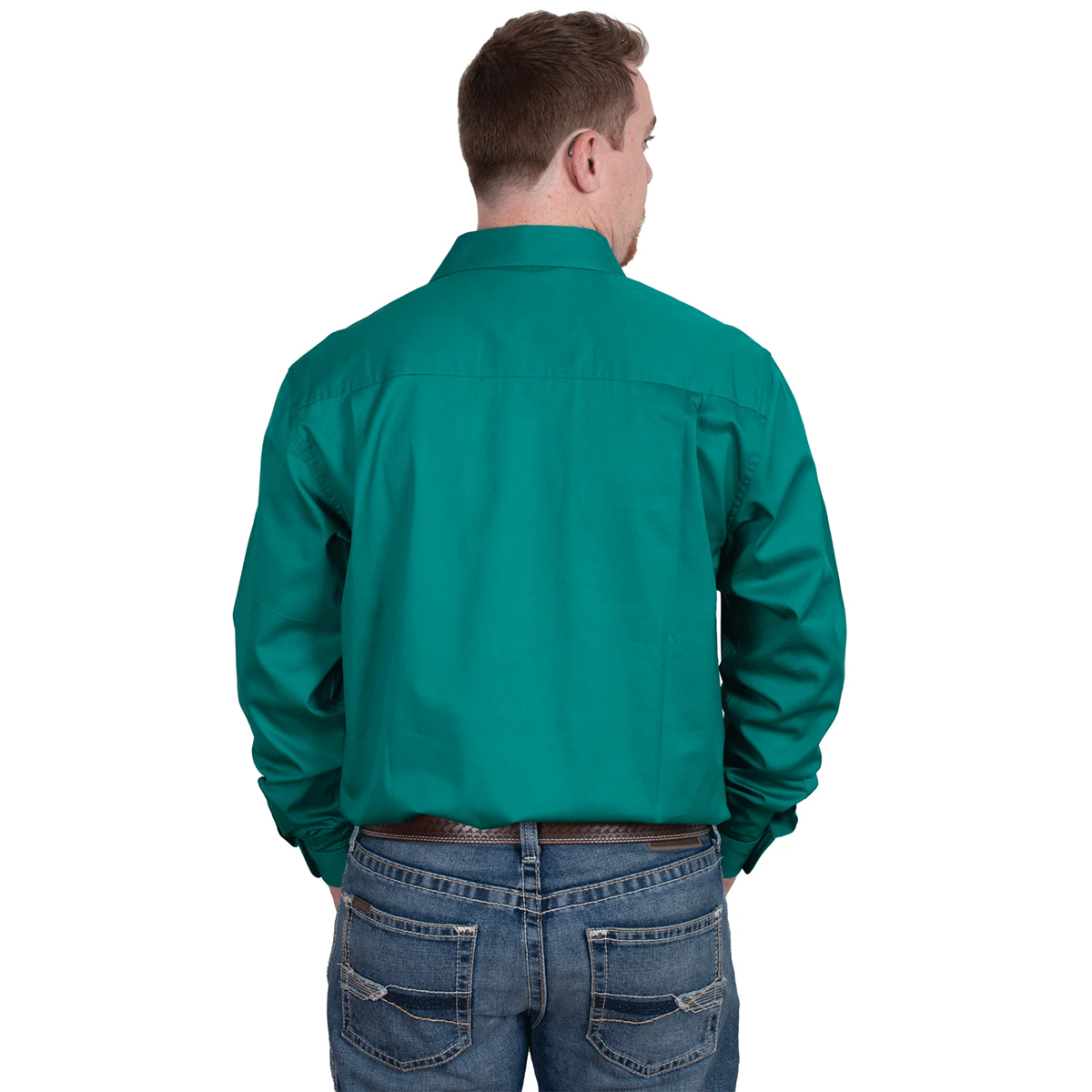 Long tails so shirts stay tucked-in, 100% Cotton, Double pockets, Long sleeve, Half button front, Twin needle stitching, Side pleats on back for ease of movement, Pen hole left pocket, Lightweight 150gsm
