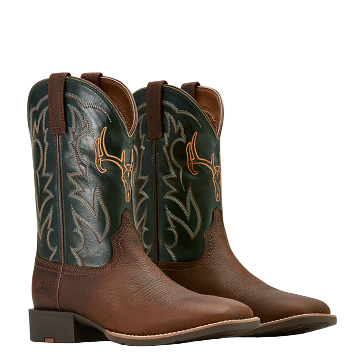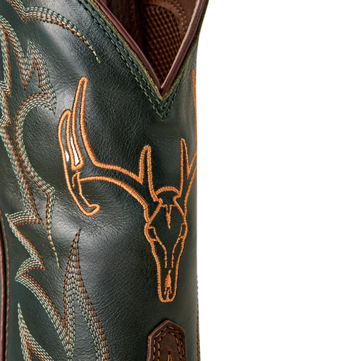 - Brown vamp and black shaft with western embroidery and steer head embroidery