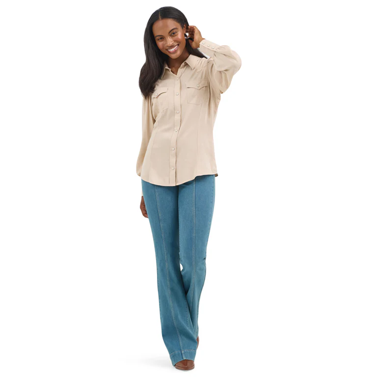 The standout poet sleeves add gentle volume through the arms, giving this western classic a modern, flattering twist. Easy to dress up or down, it’s a versatile piece that works just as well with denim and boots as it does styled a little sharper for town.