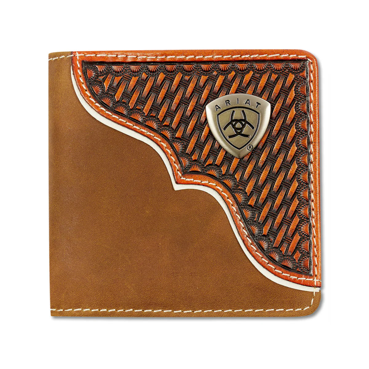 Ariat Tri Fold Wallet Brown - Basket Weave Overlay