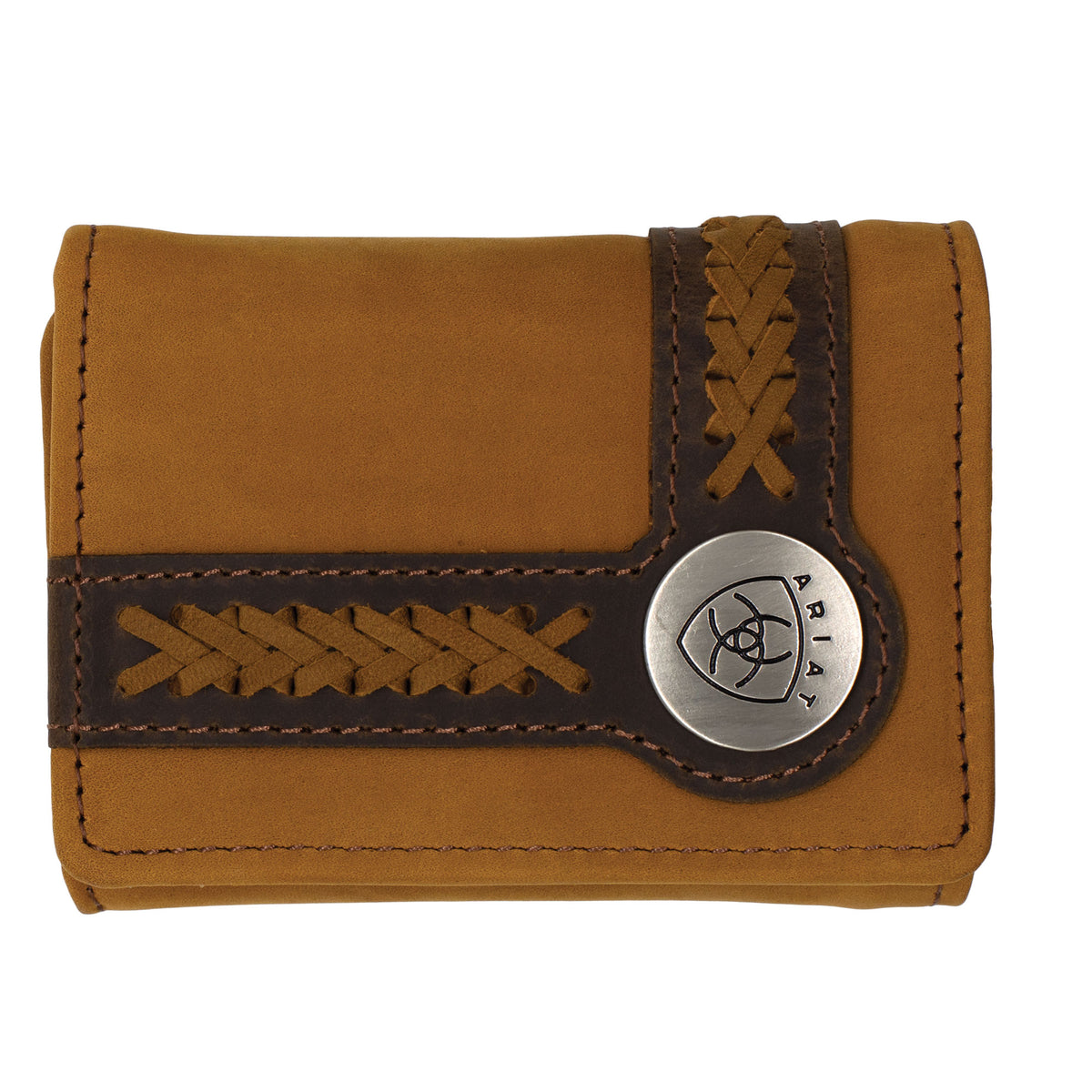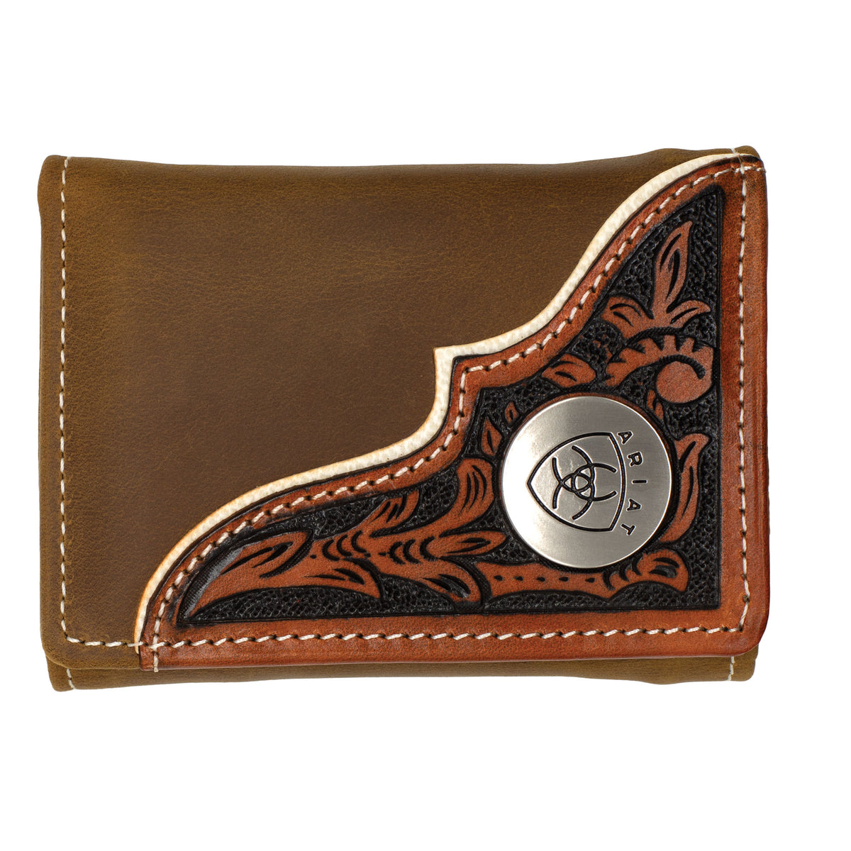Ariat Tri Fold Wallet Brown - Accent Overlay WLT3102A