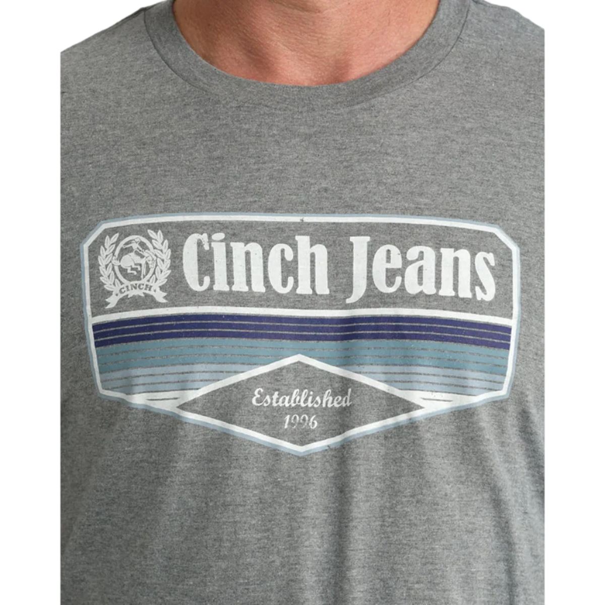 Built for long days and hard work, this gray crew neck tee shirt with CINCH Jeans front screen print is a reliable staple for life on the ranch. Cotton-poly construction offers the perfect mix of breathability and durability, holding up to daily wear while keeping you comfortable.