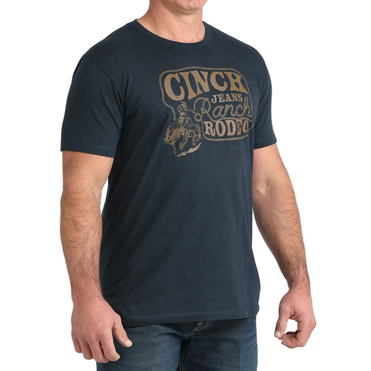 Crafted by CINCH, this navy short-sleeve tee shirt features a soft, durable cotton-poly blend for all-day comfort and easy care. With a classic crew neck and a bold CINCH Rodeo front screen print, you can count on authentic Western style with a casual edge. Perfect for everyday wear, this tee pairs effortlessly with your favourite jeans for a laid-back, rodeo-ready look.