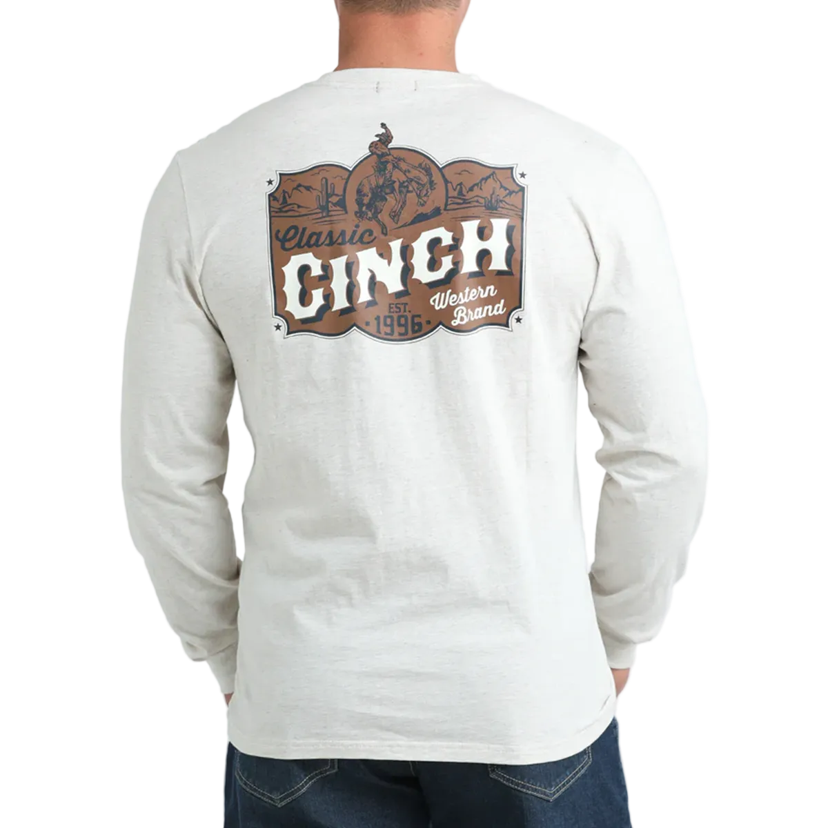 Crafted from soft-hand cotton jersey, this cream long-sleeve tee shirt offers exceptional comfort and easy, everyday wear. Designed with CINCH screen prints on the front and back, it delivers a clean, casual look with signature style. Perfect on its own or layered under your favourite jacket, this tee combines softness, durability, and Western-inspired attitude.